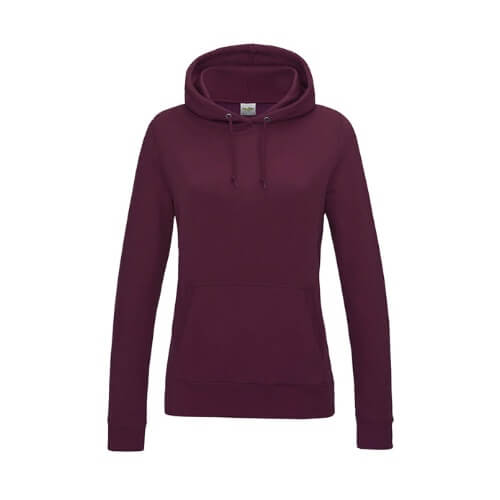 Een Girlie College hoodie in de kleur Burgundy met een mooie kwaliteit van 280gr 80% katoen - 20% polyester. Heeft ruime buidel zakken met in de zak een opening om hier een draad van een koptelefoon of oortjes doorheen te halen zodat de draad niet meer zichtbaar is. De capuchon is dubbel gevoerd en de trekkoorden om de capuchon mee aan te snoeren hebben dezelfde kleur als de hoodie. In de kraag zitten 2 lusjes om de oortjes aan op te hangen. Deze College Hoodie is afgewerkt met dubbele stikdraden en een geribbelde manchetten en zoom voor extra stevigheid. Te bestellen vanaf maat XS t/m XXL.